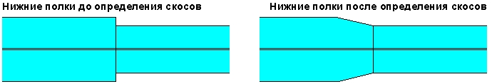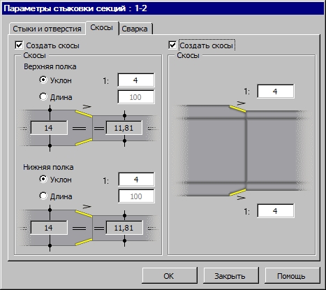 В правой части диалогового окна находятся опции для создания скосов для соединения пластин полок различной ширины (см. рисунок ниже).