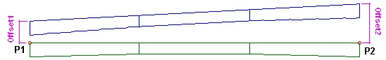 Смещения могут быть определены отдельно для начальной (P1) и для конечной (P2) точки балки. Если величина вертикального смещения в точке P1 отличается от смещения в точке P2, то геометрия многосекционной балки изменяется. Полной длина балки и длины отдельных секций, представленные на закладке Секции пересчитываются, и закладка будет показывать текущие величины полной длины балки и длины отдельных секций (длины всех секций будут одинаковыми)