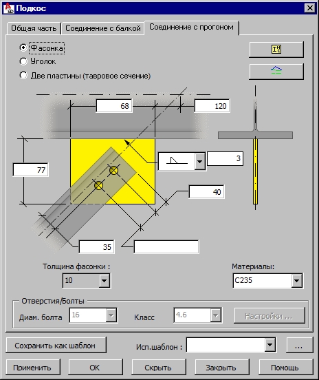 После определения геометрических характеристик на закладке Общая часть можно переходить к закладке Соединение с прогоном.