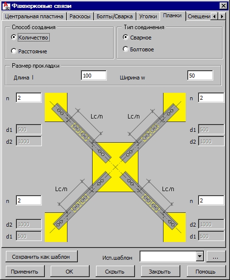 В верхней части диалогового окна могут быть выбраны следующие типы соединений для реек: - болтовое; - сварное.