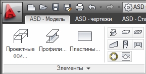 Лента автоматически показывает, когда создан или открыт чертеж в рабочем пространстве ASD. Можно отобразить ленту вручную одним из следующих способов: