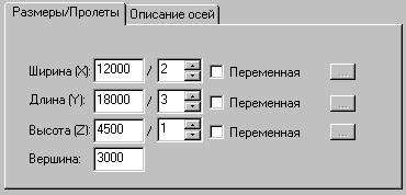 На закладке Размеры/пролеты доступны такие опции: