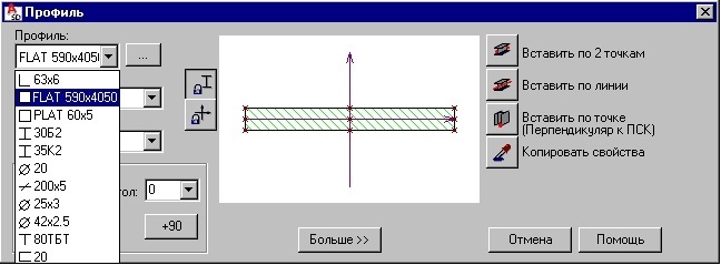 - указывают имя сечения, например, FLAT 590x4050 (имя должно состоять из четырех букв и значений, описывающих размеры профиля);