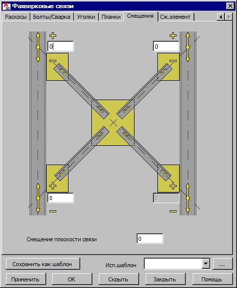 Величина смещения всей плоскости фахверковых связей (всех их компонентов) может быть указана в нижней части диалогового окна. Принимается следующее правило для этого параметра: