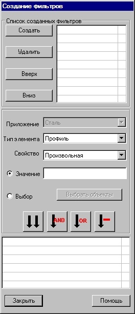 Если поля Свойства и Значение не заполнены (они пусты), это означает, что все элементы выбранного типа (все значения) будут включены в определённый фильтр.