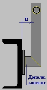 - если расстояние D больше, чем толщина накладки + 0.2 дюйма , то стойка снабжается горизонтальным элементом, изготовленным из того же профиля, что и профиль стойки; этот элемент приваривается к стойке посредством заводского шва;