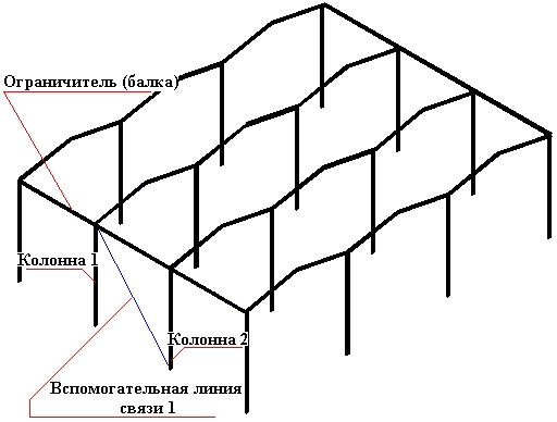 - В области рисования указывают линии связей, колонны и объекты, которые будут верхними ограничителями, определяющими положение связей (см. рисунок ниже)