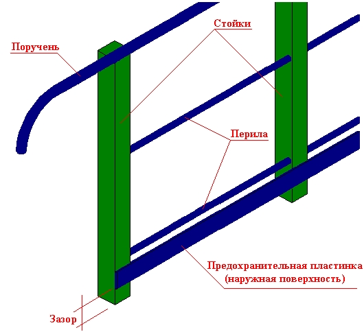 Если включена опция Ось (периодическая), то предохранительная пластина изготовляется из отдельных отрезков, закреплённых между столбиками перил (см. рис. ниже). Предохранительная пластина устанавливается по оси стоек и приваривается к внешним поверхностям стоек посредством стыковой сварки. Следует отметить, что отдельные отрезки предохранительных пластин должны точно входить в промежутки между стойками перил.