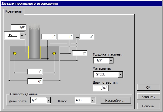 - при помощи опции Поручень/стойка сварка th определяется толщина сварного шва между поручнями и стойками;