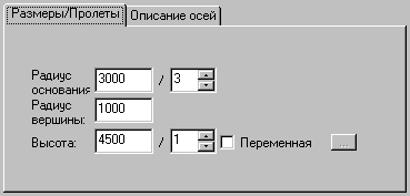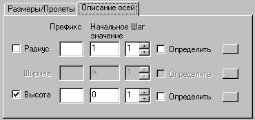 При выборе опции Призма в диалоговом окне Проектные оси диалоговое окно будет состоять из двух закладок: Размеры/пролеты и Описание осей.