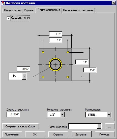 Если включена опция Создать плиту, то программа создаст плиту в нижней части лестницы.