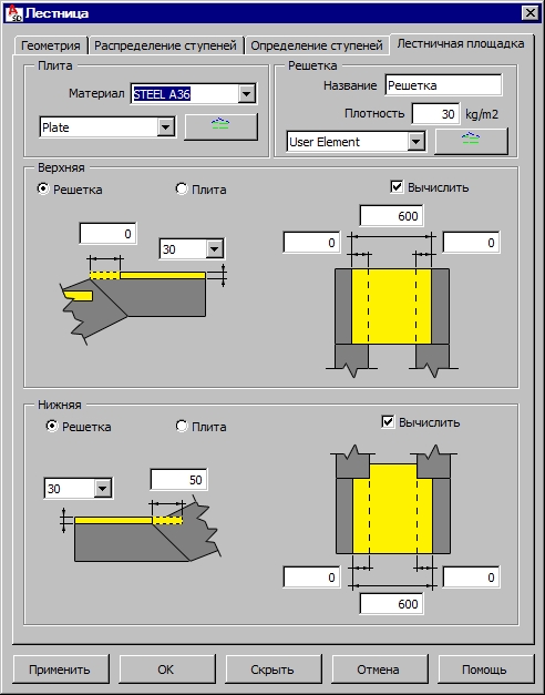 Опции, находящиеся на этой закладке, используются для определения параметров лестничных площадок.