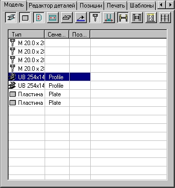 На этой закладке могут быть представлены следующие объекты, созданные в конструкции: