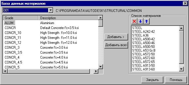 В данном списке можно добавить материалы из баз данных, доступных в программе, к списку существующих материалов. Для того, чтобы добавить материал в список, необходимо выполнить следующие действия: