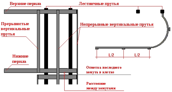 - Дополнительные вертикальные стержни создаются в тех местах, где и вертикальные стержни ограждения (эти дополнительные стержни могут быть или непрерывными, или прерываться).