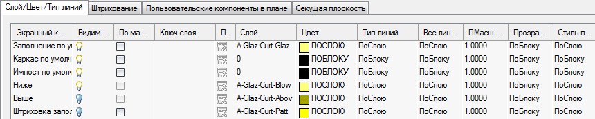 Данная процедура предназначена для того, чтобы задать свойства одной или нескольких секущих плоскостей в стиле витража. Графические свойства секущей плоскости относятся только к таким экранным представлениям как "План", которые используются на видах чертежа сверху (в плане).