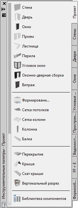 Не менее одного инструмента оконных/дверных сборок содержится в следующих палитрах: