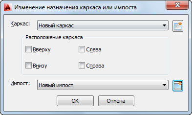 На экран выводится таблица "Изменение назначения каркаса/импоста".