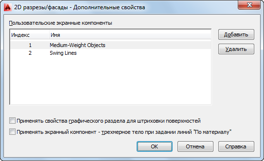 6. Чтобы задать графические свойства для любого добавляемого компонента, откройте вкладку "Слой/цвет/тип линий", выберите компонент и измените значения в столбцах.