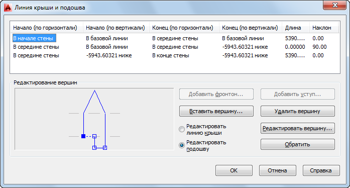 Данная процедура предназначена для добавления уступа к линии крыши или подошве витража.
