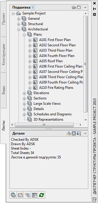 Подшивка проекта в Диспетчере структуры проекта AutoCAD Architecture