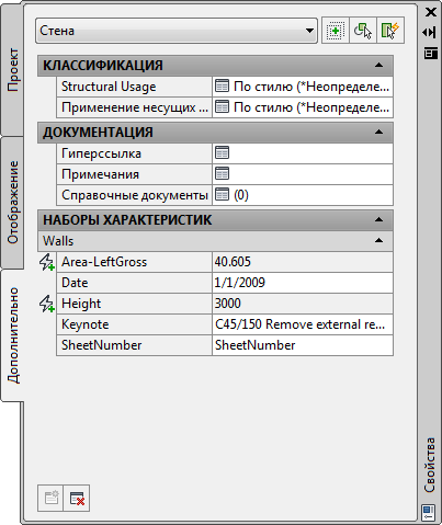 Свойства стен с ключевой заметкой, датой и полями для номеров страниц