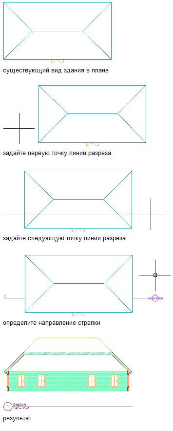 Разрез представляет собой воображаемый разрез модели здания по вертикали, демонстрирующий детали интерьера. Можно создавать двумерные (2D) или трехмерные (3D) разрезы объектов или псевдоразрез модели. Можно контролировать размер и форму создаваемого разреза и указывать материалы, чтобы получить оптимальное представление об объектах разреза. Объекты разреза остаются привязанными к модели здания, которая используется для их создания, пока не уничтожен разрез. В результате связи между разрезом и моделью здания любые изменения в модели здания отражаются также и в разрезе.