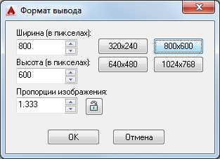 Если задается уникальный формат вывода, он добавляется в список "Формат вывода" палитры "Параметры визуализации". Возможно временное хранение в списке форматов вывода четырех уникальных значений формата вывода, но они не сохраняются с текущим чертежом и не переносятся из одного сеанса черчения в другой.