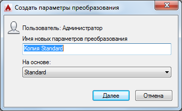 Выберите существующий набор параметров преобразования, на основе которого будет создан новый набор.