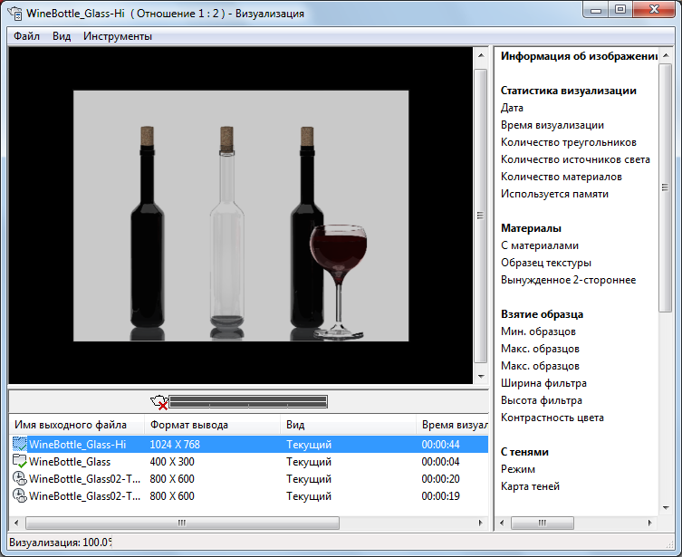 Данная информация зависит от настроек, выполненных в диалоговом окне "Диспетчер параметров визуализации", и от информации, созданной во время визуализации.