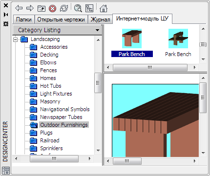 Для доступа к модулю Центра управления нужно перейти в центре управления на вкладку "Интернет-модуль Центра управления". После открытия окна "Интернет-модуль Центра управления", можно просматривать, искать и загружать содержимое в чертёж.
