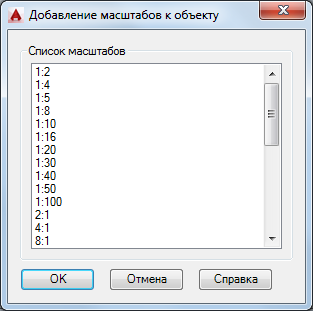Вывод списка масштабов, которые можно добавить к выбранному аннотативному объекту.
