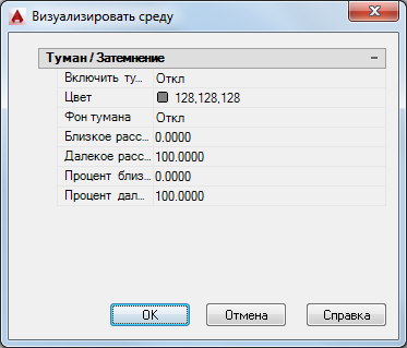 Включение и отключение тумана без изменения других установок диалогового окна.