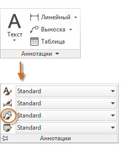 Можно создать собственные стили мультивыносок с помощью раскрывающегося списка в расширенной панели "Аннотации" или с помощью окна командной строки и команды МВЫНОСКАСТИЛЬ.
