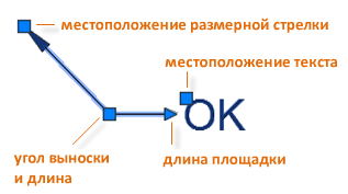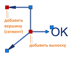 Меню ручек отображаются при наведении курсора на стрелки и ручки выноски. С помощью этих меню можно добавлять сегменты выноски или дополнительные выноски.