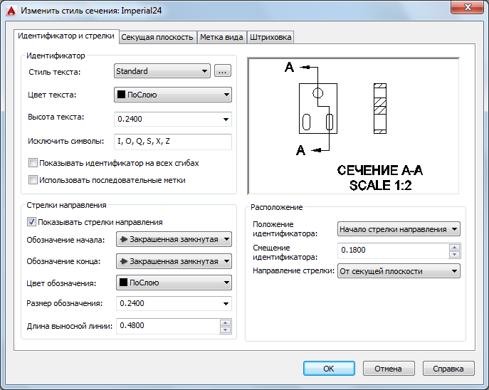 Управление форматом идентификаторов на линиях сечения.