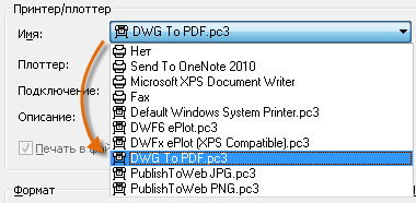 В раскрывающемся списке принтера/плоттера выберите DWG To PDF.pc3: