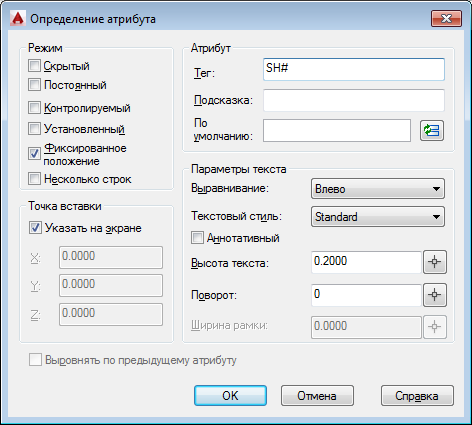- Повторите указанные действия для каждого определения атрибута, предназначенного для основной надписи, как показано на иллюстрации.