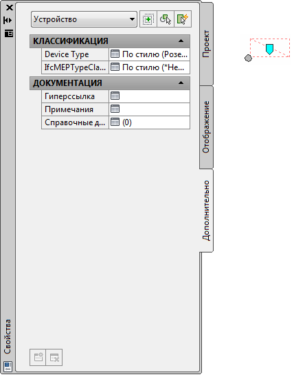 Поскольку устройство на чертеже является вхождением какого-либо стиля устройства, оно имеет свойство для каждого определения классификации, имеющегося в этом стиле устройства. В палитре свойств на вкладке "Расширенные данные" можно посмотреть или переопределить классификацию для одного или нескольких имеющихся на чертеже устройств.