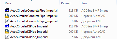 Рисунок 1. Файлы каталога для двух типов труб круглого сечения
