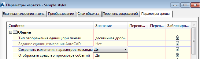 - Нажмите на вкладке "Параметры среды", разверните "Общие свойства". Для параметра "Сохранить изменения параметров команды" задайте значение "Да".