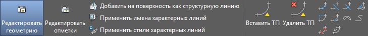 Команда AutoCAD "Удлинить" к характерным линиям применима, а вот команды "Разорвать" и "Обрезать" — нет. Причина в сложности характерных линий. Для решения этой проблемы в меню и на панель "Редактировать геометрию" для характерных линий были добавлены предназначенные для характерных линий команды "Разорвать" и "Обрезать" (см. рисунок 2). Команды разрыва и обрезки обеспечивают точность при выполнении операций редактирования характерных линий.