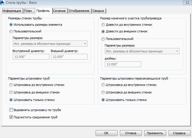 Используйте параметр подчистки межтрубных соединений в диалоговом окне "Стиль труб" (как показано на рисунке 4) для улучшения вида профилей труб, чтобы на изображении они были выровнены нужным образом. Этот флажок не установлен по умолчанию, поэтому его следует установить.
