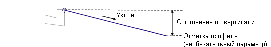 Звено с данным откосом добавляется от точки привязки в направлении вставки до достижения заданной отметки. Если имя профиля определяется во время выполнения программы, отклонение по вертикали регулируется в соответствии с отметкой профиля.