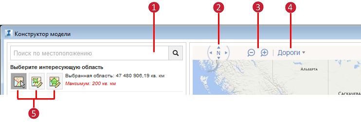 Прим.: Конструктор модели поддерживает области площадью до 150 кв. км.