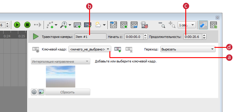 c. Задайте поведение камеры для выбранного ключевого кадра.