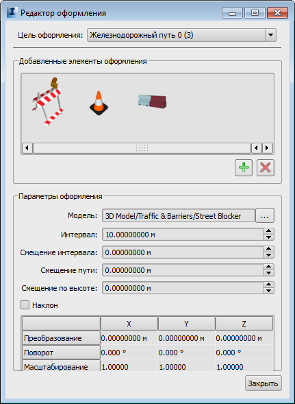 Можно добавлять транспортные средства, растительность и другие 3D-объекты в качестве элементов оформления на любом железнодорожном пути или любой полосе дороги.