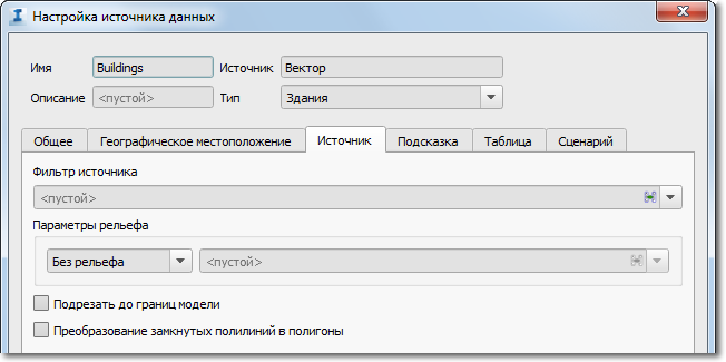Укажите параметры рельефа для импортированных данных. Параметры рельефа определяют отношения между импортируемыми данными и отметкой рельефа.