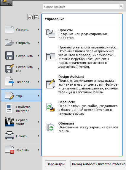 - Откройте файл, созданный в более ранней версии Autodesk Inventor (вплоть до Autodesk Inventor 2008).