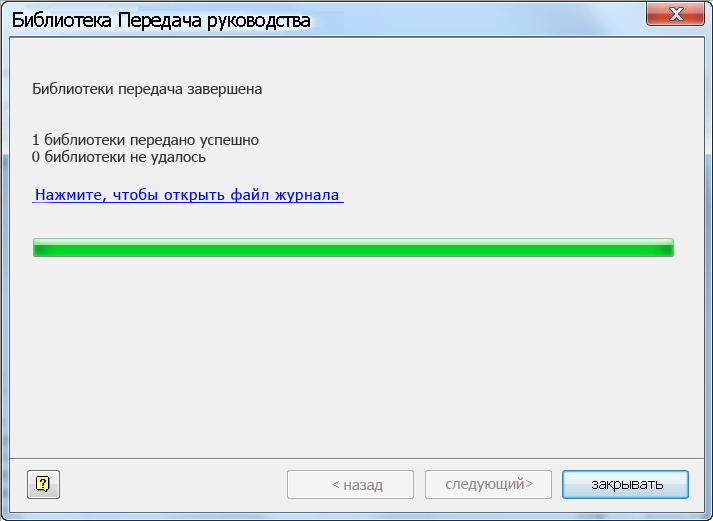 - Нажмите кнопку "Далее" для указания библиотек. См. рисунок 5. Затем нажмите "Закрыть", чтобы закончить операцию.